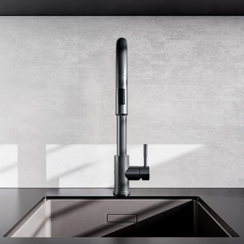 - Anthrazitfarbene PVD-Beschichtung – ein eleganter, anthrazitfarbener Ton, der Ihrer Küche eine moderne und luxuriöse Note verleiht.
