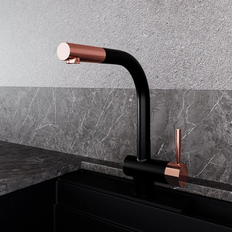 Lobio Schwarz/Kupferring ist Schönheit und Stil, aber auch unvergleichliche Funktionalität in Ihrer Küche. Es ist nicht nur eine Armatur, sondern ein Element, das durch seine Funktionen den Komfort der täglichen Aktivitäten erhöht und Ihrer Küche einen einzigartigen Charakter verleiht.