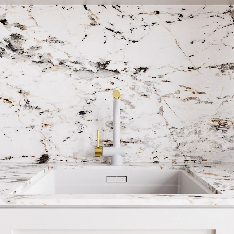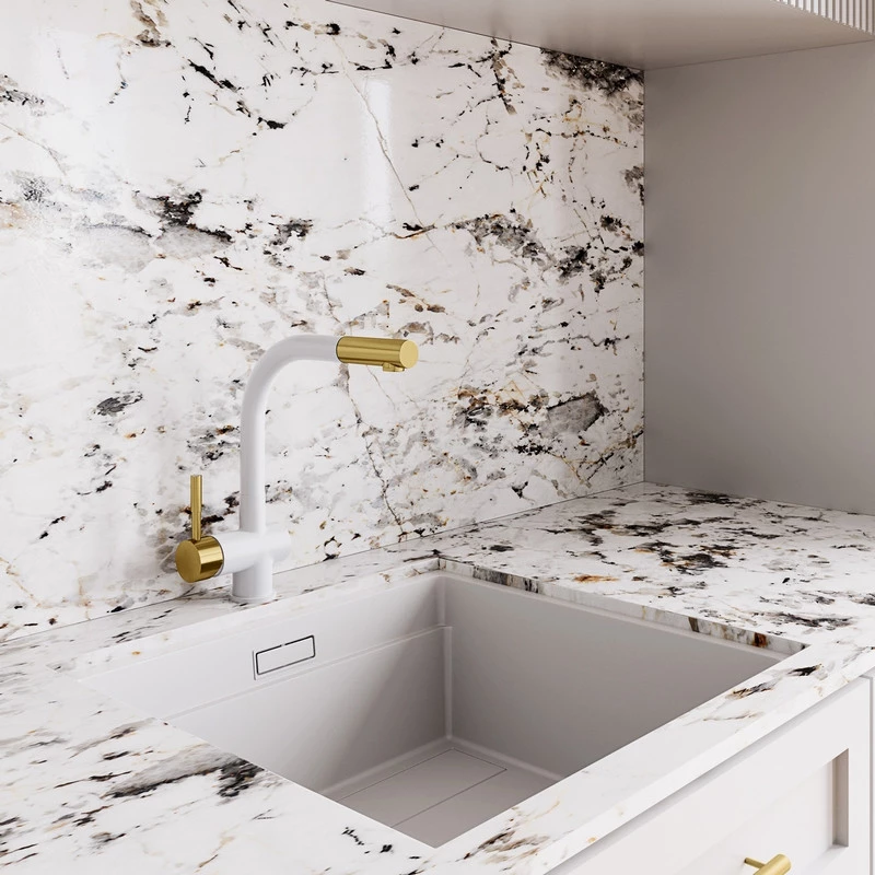 Küchenarmatur Lobio White/Light Gold Mat Ring – Eleganz und Komfort in einem
