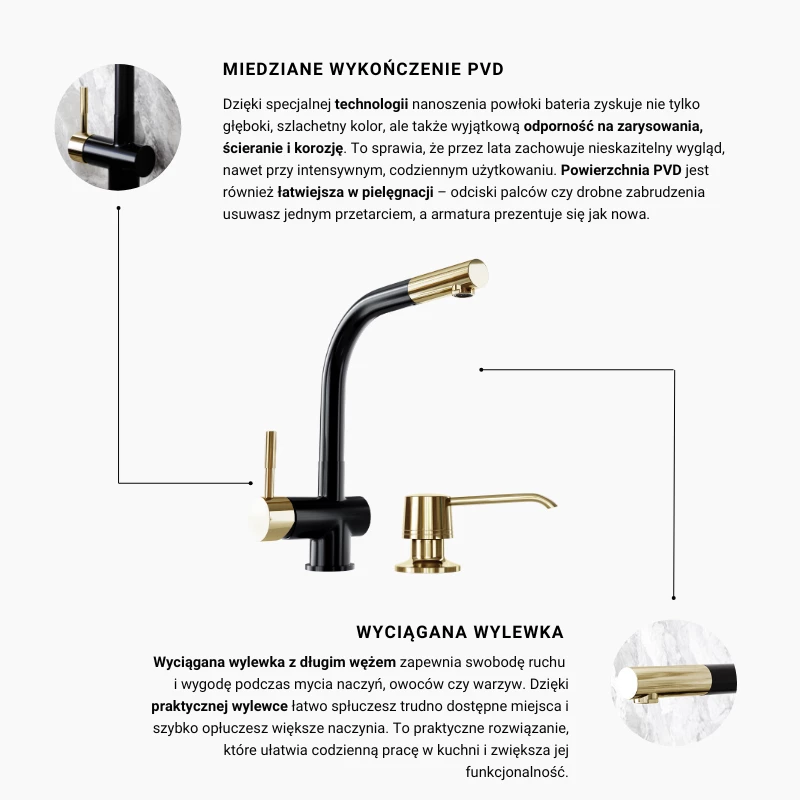 Das Set GLOBALO Lobio Black/Light Gold Ring mit Intio Light Gold Seifenspender ist ideal für alle, die Schönheit und Funktionalität schätzen. Die Armatur fügt sich perfekt in moderne wie auch klassische Küchen ein, während der Seifenspender das Gesamtbild dezent ergänzt. Mit seiner eleganten Ausführung und durchdachten Details wird Ihre Küche noch stilvoller und benutzerfreundlicher.