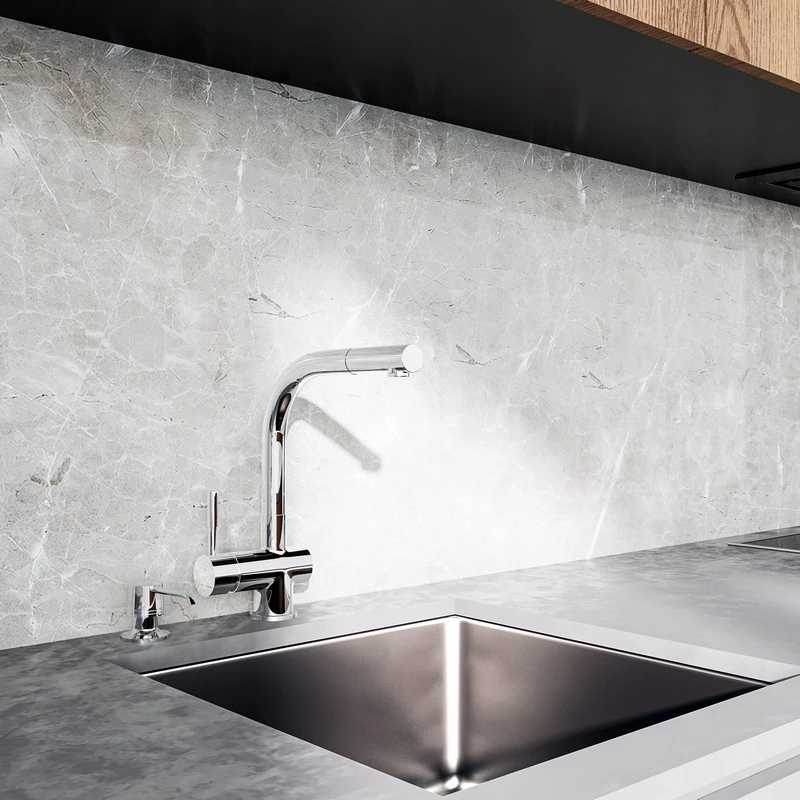 - Die Chromoberfläche verleiht dem Spender ein elegantes Aussehen und ergänzt das Küchendesign perfekt.