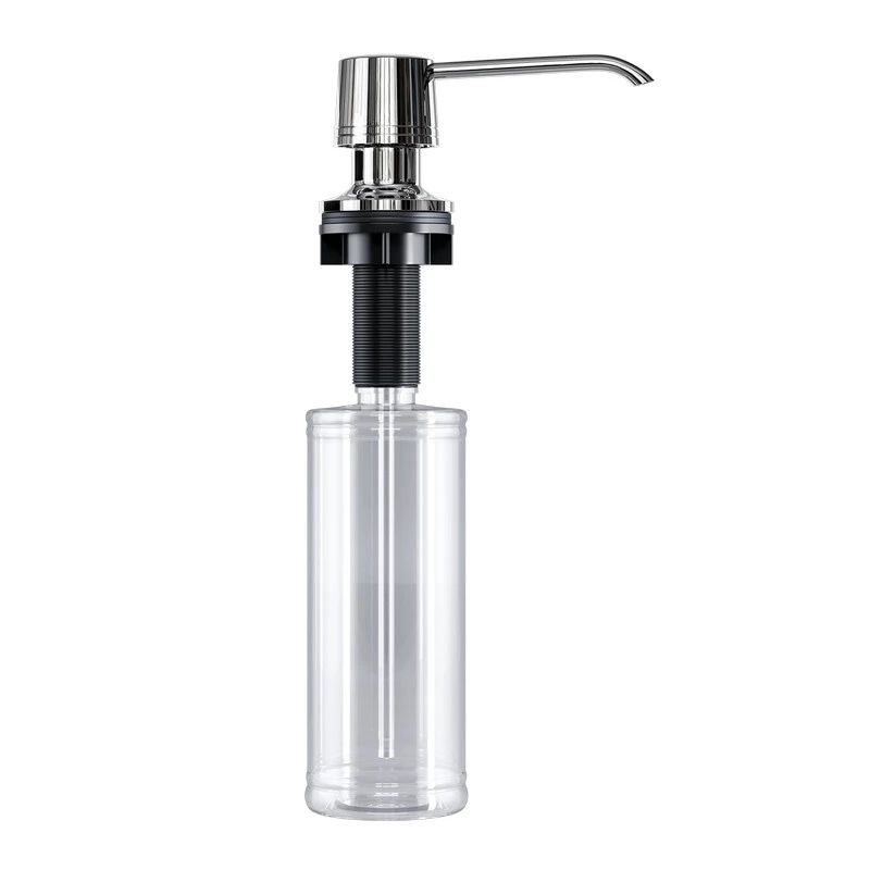 - Der Spender verfügt über einen Nachfüllbehälter, der mit Spülmittel oder Handseife befüllt werden kann. Die Flasche wird unter der Arbeitsplatte montiert, was für mehr Ordnung im Spülbereich sorgt und die Ästhetik der Küche verbessert.