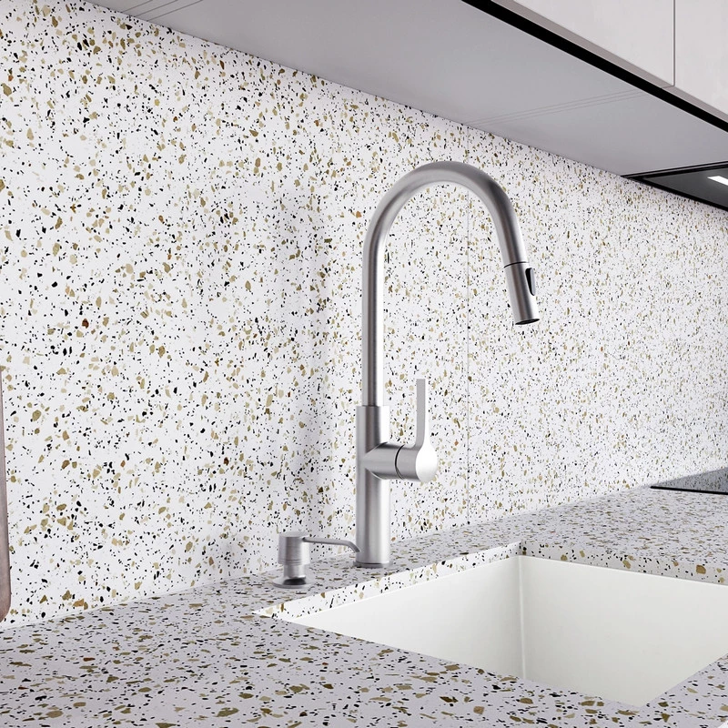 - Die Oberfläche aus gebürstetem Edelstahl verleiht dem Spender ein elegantes Aussehen und ergänzt das Küchendesign perfekt.