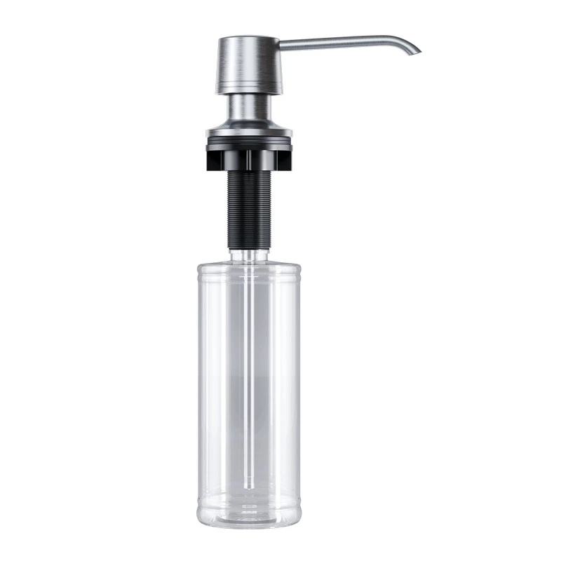 - Der Spender verfügt über einen Nachfüllbehälter, der mit Spülmittel oder Handseife befüllt werden kann. Die Flasche wird unter der Arbeitsplatte montiert, was für mehr Ordnung im Spülbereich sorgt und die Ästhetik der Küche verbessert.