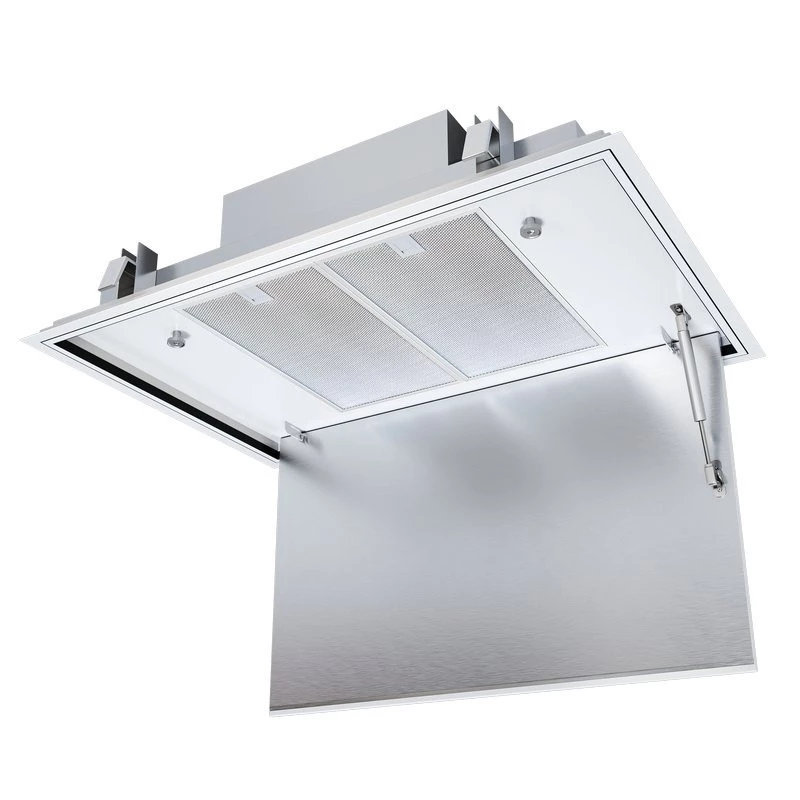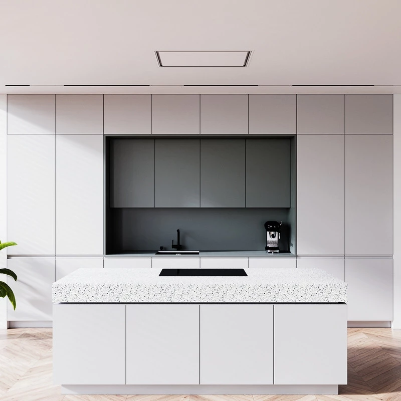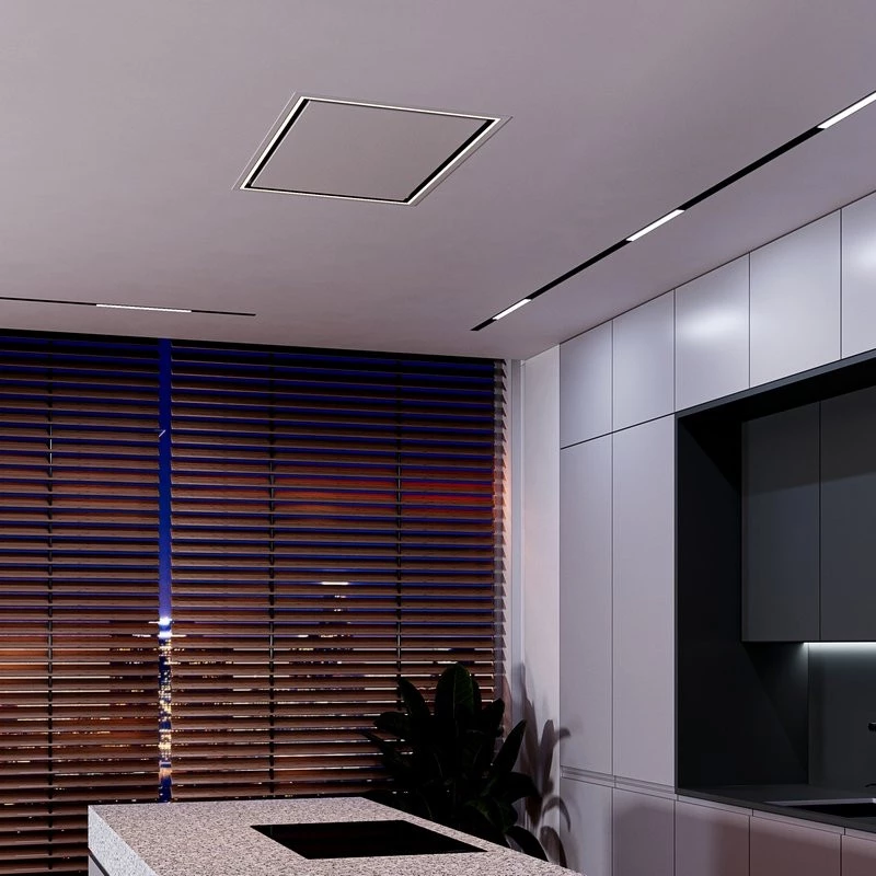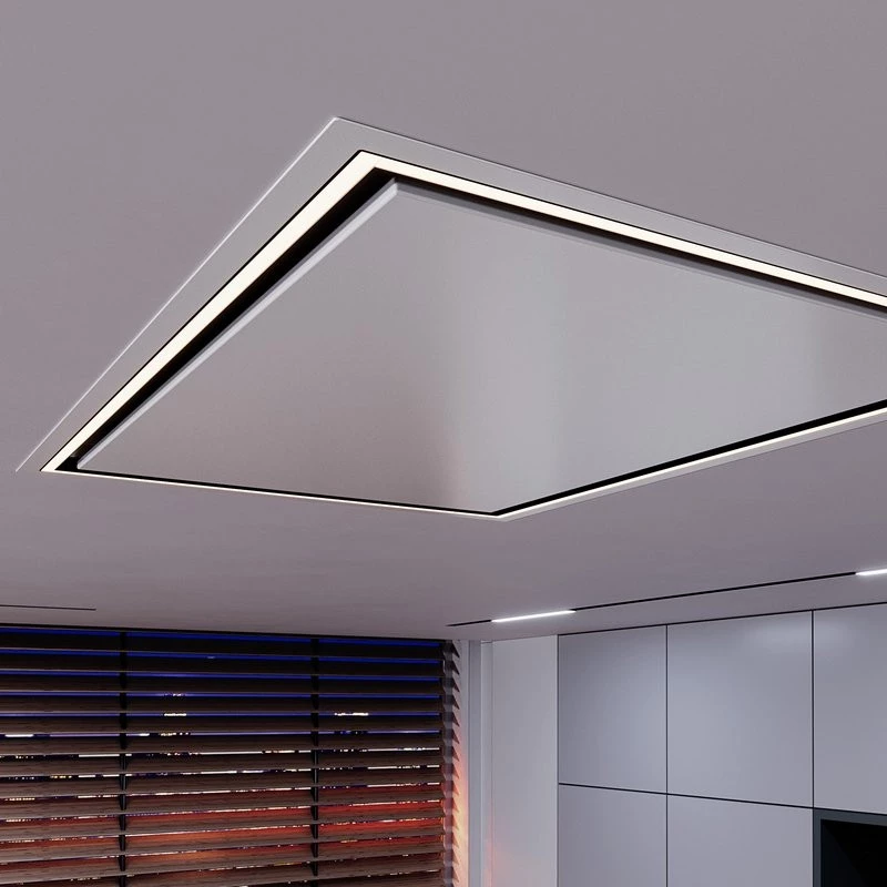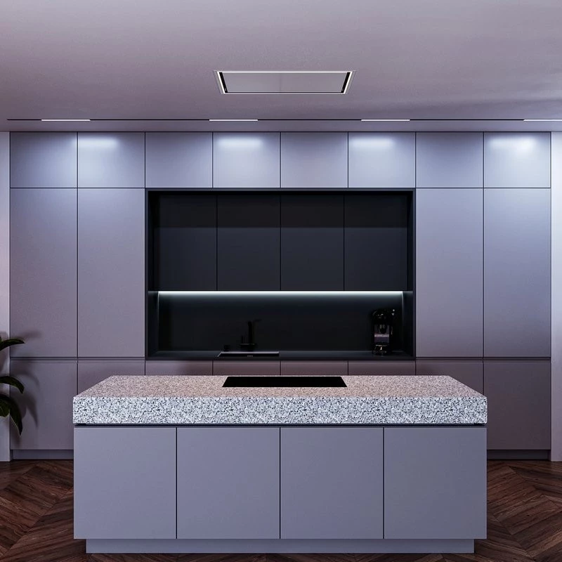 Die Deckenhaube eignet sich hervorragend für minimalistische Küchen, in denen es wichtig ist, dass das Gerät nicht das gesamte Design dominiert. Materialien