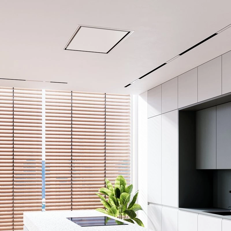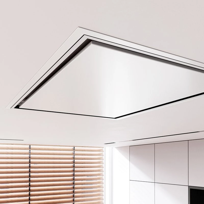 Suchen Sie ein diskretes, aber voll funktionsfähiges Gerät, das alle Dämpfe aus Ihrer Küche aufnimmt? Die absolut minimalistische Form der Deckenhaube Alaris 90.1 White wird sicherlich Ihr Herz erobern.