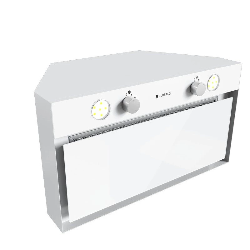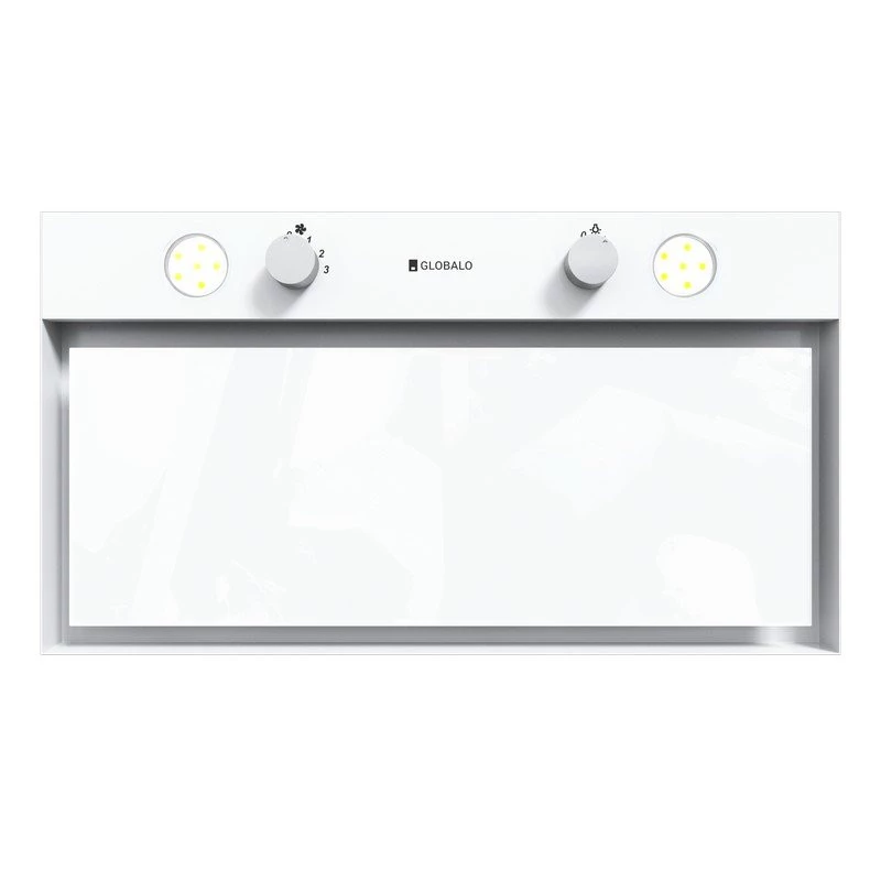 Klasa energetyczna B, do zabudowy, szer 60, gł 30 cm, sterowanie za pomocą pokręteł, zakres prędkości: 3 – stopniowy, wydajność max. 570 m3/h, głośność min. 45 dB, wykonanie: białe hartowane szkło, stal lakierowana na biało, oświetlenie LED 2 x 3W. Linia GLOBALO Design