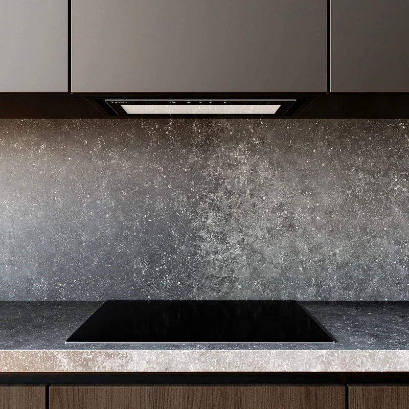 MaterialienDie Dunstabzugshaube Loteo 60.4 Schwarz ist aus elegantem, schwarzem gehärtetem Glas gefertigt.