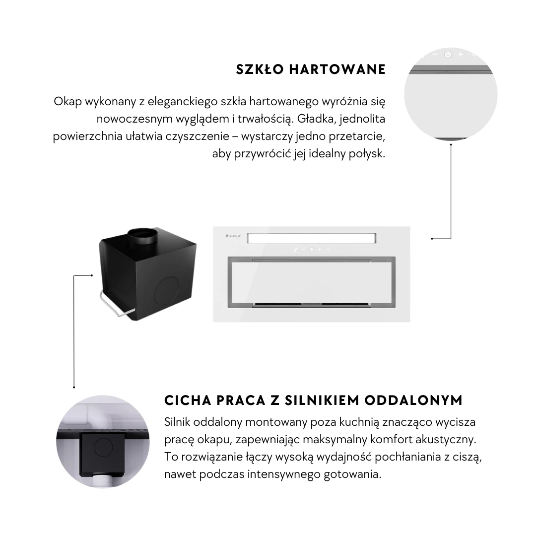 Wir präsentieren die perfekte Lösung für Liebhaber einer leisen Küche – die Dunstabzugshaube mit entferntem Motor. Das Set enthält die Einbau-Dunstabzugshaube Saredo 60.1 White und den entfernten Motor TW 1.2. Dank der Möglichkeit, die Turbine außerhalb des Schranks zu platzieren, wird die Küche zu einem angenehm leisen Ort und bietet Komfort bei der Durchführung alltäglicher Aufgaben.