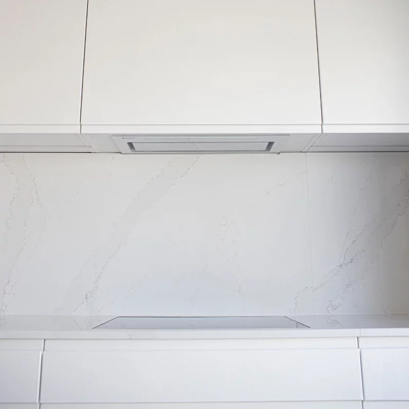 - Das kompakte Gehäuse mit einer Höhe von nur 14,2 cm ermöglicht eine einfache Verdeckung der Dunstabzugshaube in der Kücheneinrichtung und spart Platz.