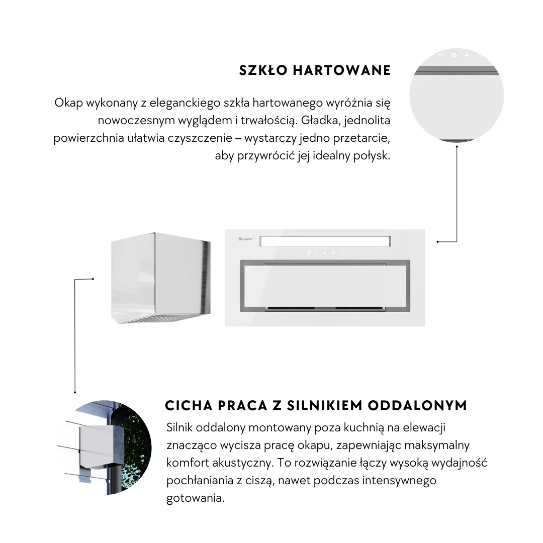 Silentio 80.2 White + Turbine TZ 1.1 ist eine Lösung für alle, die absolute Ruhe in der Küche und modernes Design schätzen. Durch die Verlagerung der Turbine außerhalb des Raums wird das Kochen nahezu geräuschlos, bei gleichbleibend hoher Effizienz. Der abgesetzte Motor der Dunstabzugshaube verlegt die Lärmquelle nach außerhalb des Gebäudes. Dadurch arbeitet das Gerät außergewöhnlich leise und der Kochkomfort steigt deutlich.