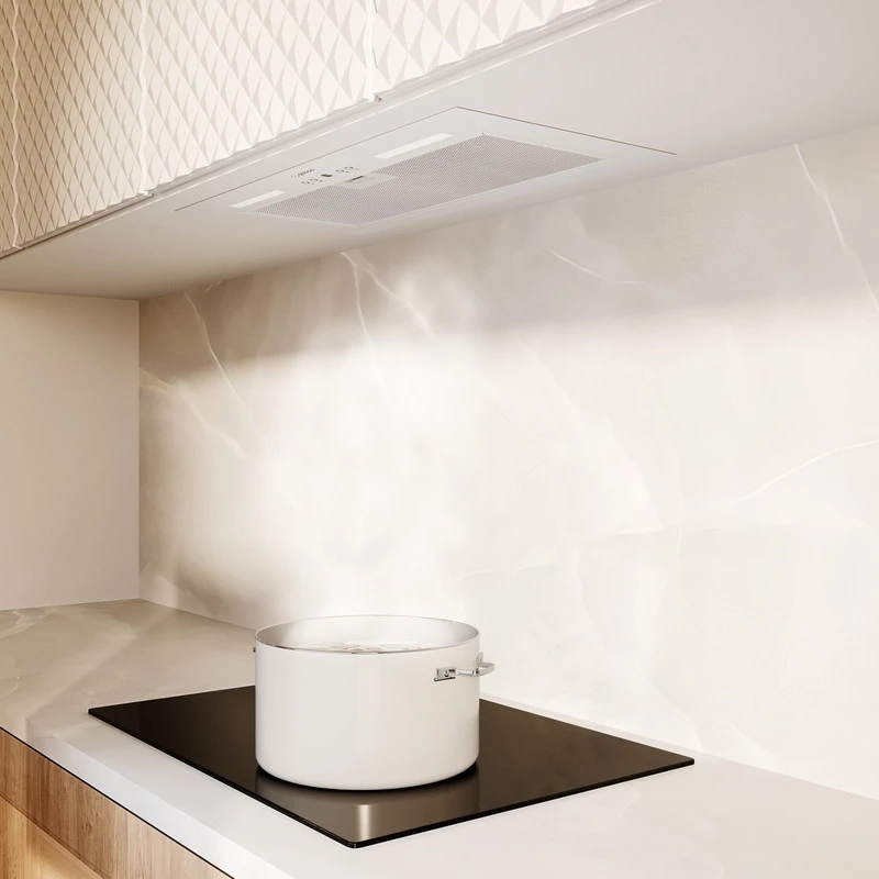 Ein großer Vorteil der Dunstabzugshaube Viledo 60.1 Weiß ist ihr absolut diskreter Charakter. Sie kann problemlos in fast jedem Schrank untergebracht werden und nimmt daher sehr wenig Platz ein. Die Aluminiumfilter der Haube sind weiß lackiert, wodurch sie sich ästhetisch in das Gerät einfügen.