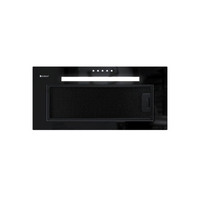 Klasa energetyczna D, do zabudowy, szer 59,6 cm, gł 28 cm, sterowanie push-button, zakres prędkości: 3, wydajność max. 305 m 3/h, głośność min. 47 dB, wykonanie: hartowane szkło w kolorze czarnym, filtr w kolorze okapu, oświetlenie pasek Led 5 W o neutralnej barwie. Linia GLOBALO Design