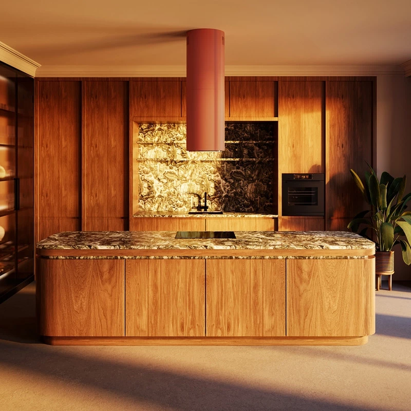 Die zylindrische Inselhaube in einem dezenten Backsteinfarbton ist ein unverzichtbares Element jeder modernen und eleganten Küche! Ihr Design harmoniert perfekt mit minimalistischen Innenräumen und bietet gleichzeitig unvergleichlichen Kochkomfort. Mit einer beeindruckenden Leistung von 675 m³/h beseitigt sie schnell unerwünschte Gerüche und Dämpfe – selbst bei intensivem Kochen. Darüber hinaus sorgt der leise Betrieb mit nur 43 dB dafür, dass die Küche ein ruhiger Ort ohne Lärm bleibt.