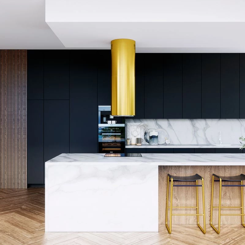Cylindryczny okap wyspowy to efektowne urządzenie, dzięki któremu wyspa kuchenna będzie nie tylko ozdobą pomieszczenia, ale również komfortową powierzchnią roboczą, znakomicie przystosowaną do przygotowywania posiłków.