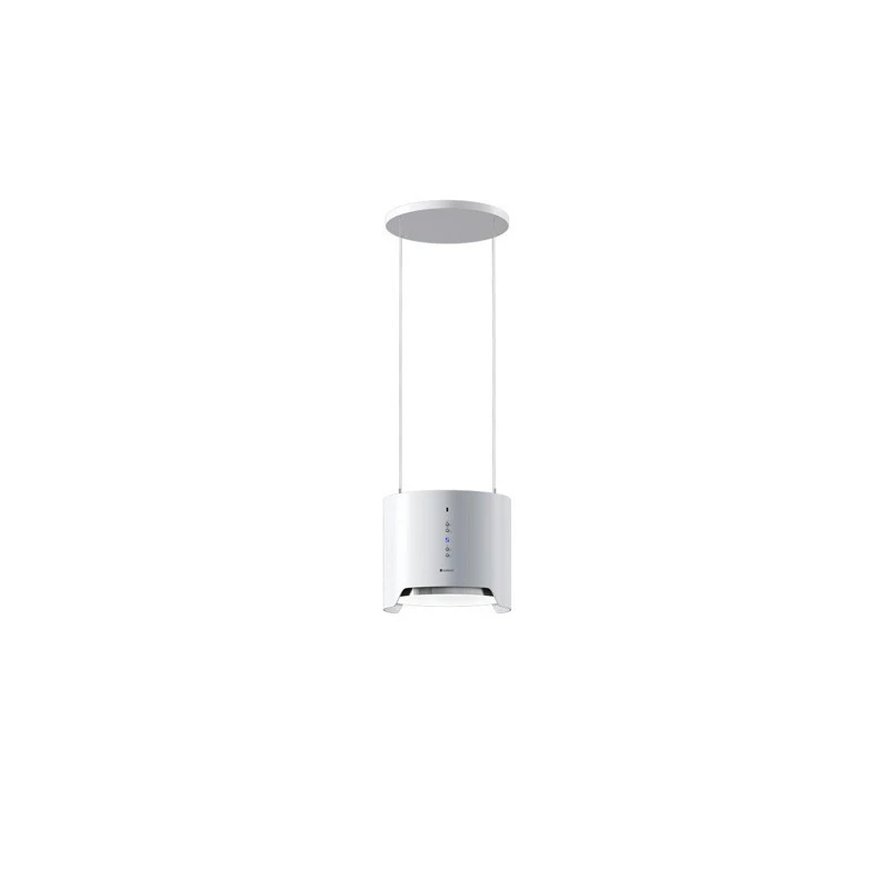 Okap wyspowy, szer. 39 cm, gł. 39 cm, sterowanie przyciskowe Soft Touch z wyświetlaczem LED, zakres prędkości: 3 biegi, wydajność max. 365 m3/h, głośność min. 54 dB, wykonanie: stal lakierowana na biało, oświetlenie LED 13 W. Linia GLOBALO Design