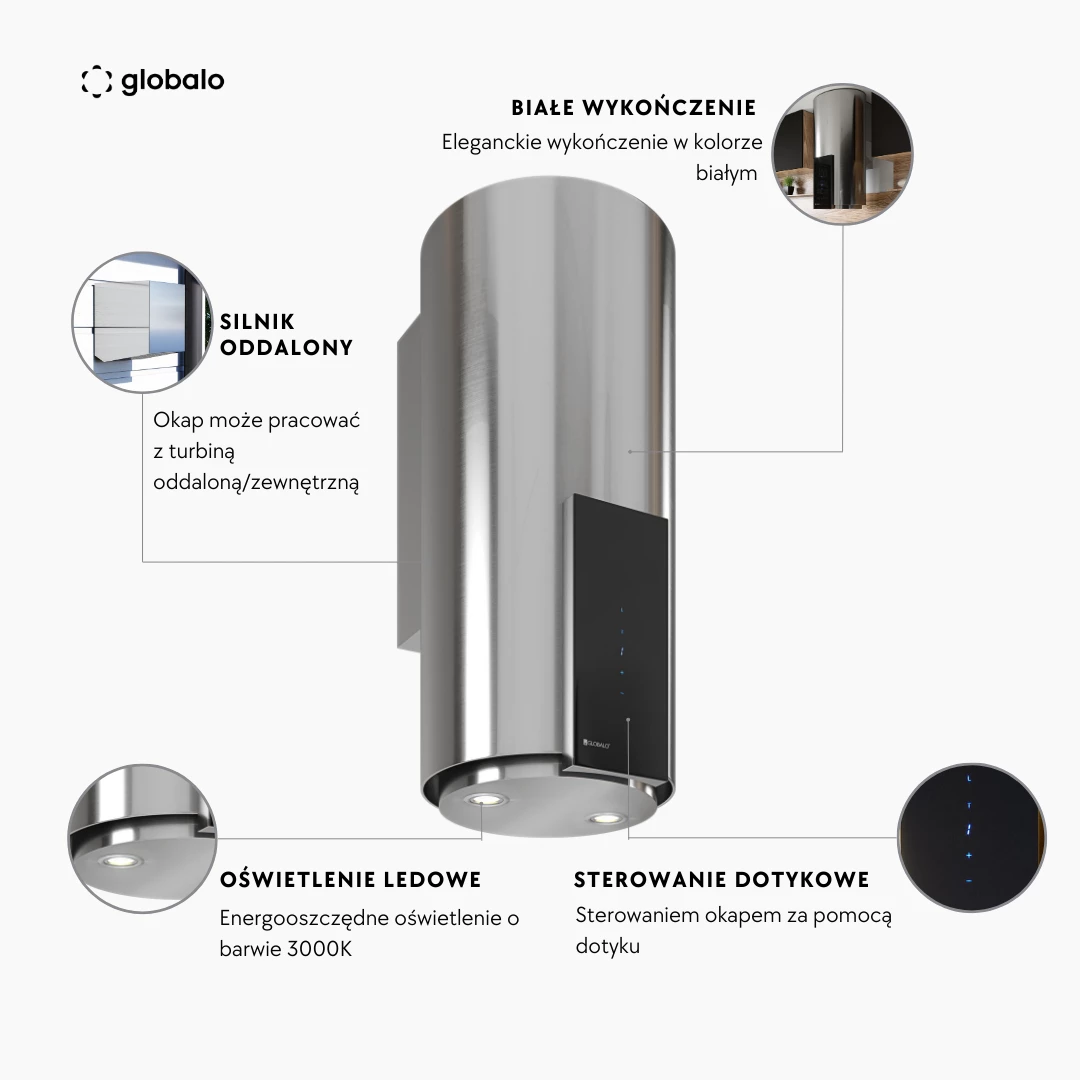 Die Wandhaube Roxano 39.1 Inox ist eine wahre Perle unter den runden Wandhauben. Sie besticht durch ihr einzigartiges Design und die zeitlose Eleganz der verwendeten Materialien. Dieses Modell kombiniert moderne Technologie, hohe Funktionalität und eine außergewöhnliche Optik.