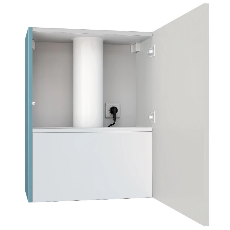 Die Haube mit Schrank Lowio 60.1 BL/Ocean Blue – stilvoll und in pastelligen Farben gehalten – eignet sich besonders für minimalistische, helle Küchen.