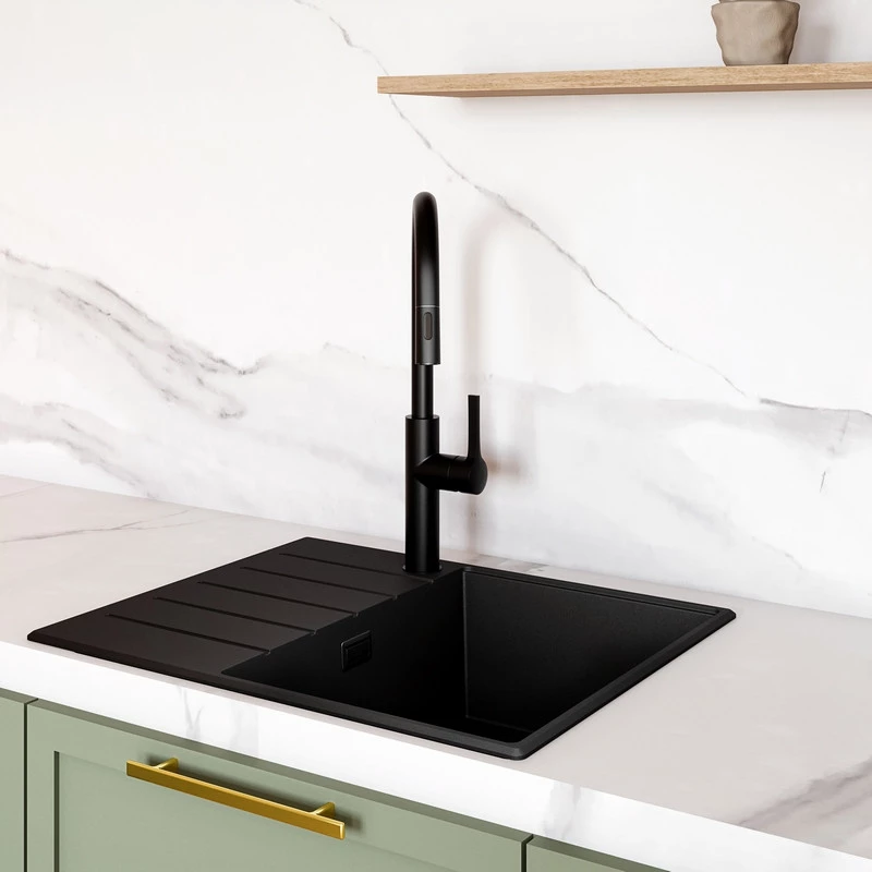 - Stoßfestigkeit – Der hochwertige Granit, aus dem unsere Spüle gefertigt ist, gewährleistet Widerstandsfähigkeit gegen Stöße und mechanische Schäden. Silvano ist eine Investition für viele Jahre!