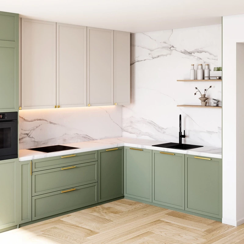 - Abstellfläche – Die Spüle bietet zusätzlichen Platz, ideal zum Abstellen des Schneidebretts und zur Aufbewahrung von Reinigungsmitteln und Zubehör, sodass alles stets griffbereit ist.