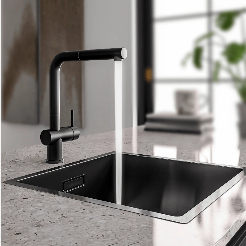 - Außergewöhnliches Design – die Riwolo-Spüle ist in Anthrazitfarbe ausgeführt, daher wird sie ein eleganter Akzent in der Küche sein.
