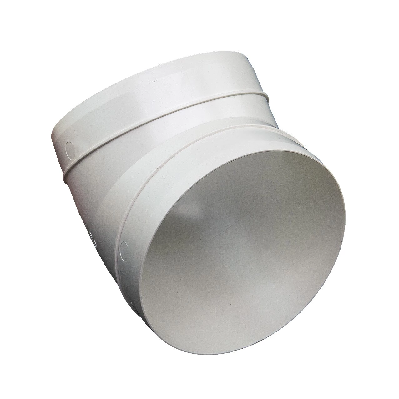 Kurze Beschreibung: Rundbogen DOMUS 45° , verfügbare Durchmesser: fi 12,5 cm. Ausführung: PVC, Zubehörtyp für Dunstabzugshauben: Belüftung.