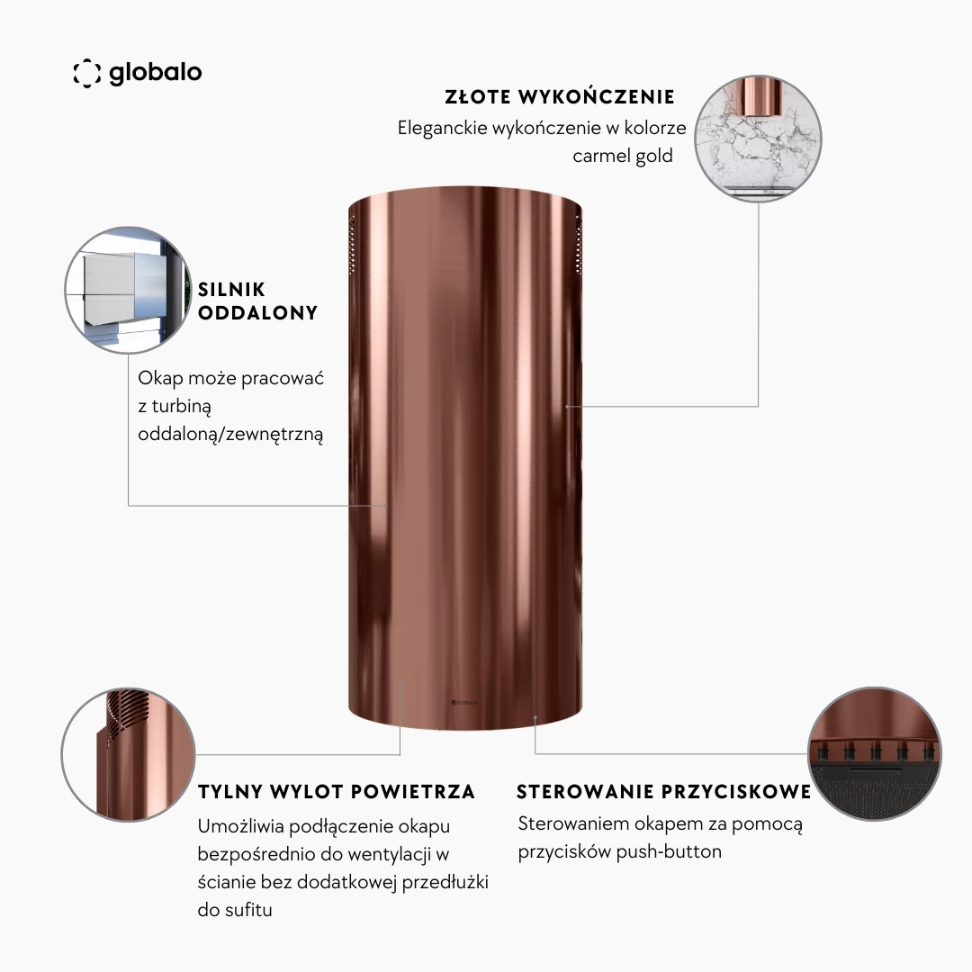 Good to KnowThe round Lobelio 39.1 Wine Copper cooker hood is an exceptionally effective and energy-efficient device.