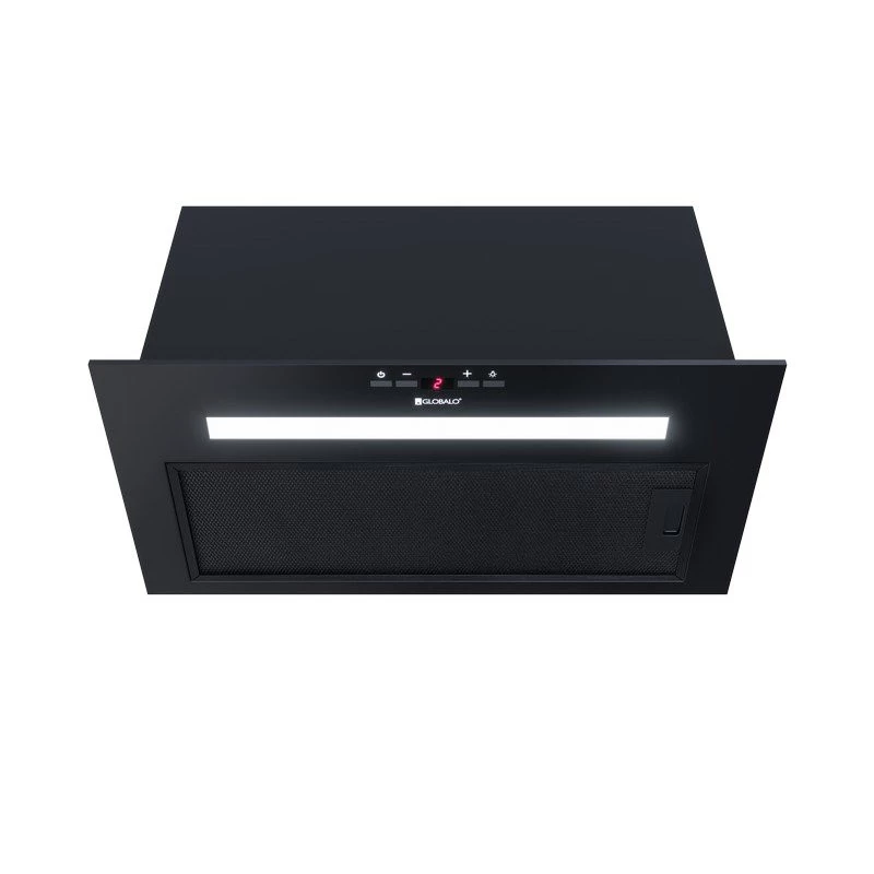 Energy class B, built-in, width 55, depth 28 cm, electronic control with Soft-Touch buttons and LED display, speed range: 3 + boost, max efficiency 575 m 3/h, min noise level 48 dB, made of black lacquered steel, LED strip lighting 5 W. Linia GLOBALO Invio