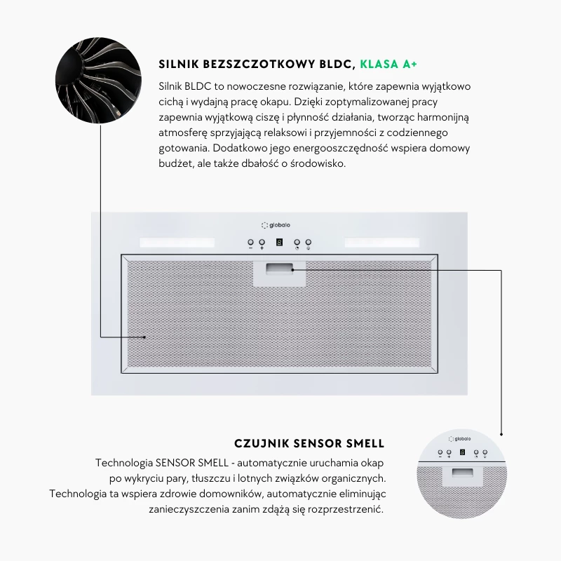 Okap kuchenny GLOBALO Flueris 60.1 White Sensor Smell