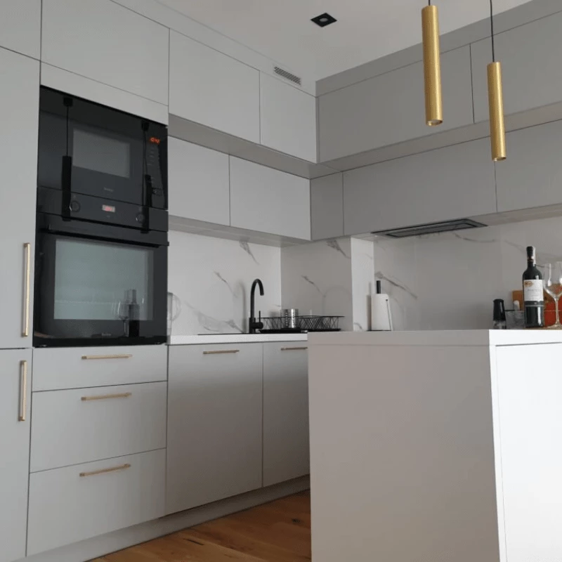 • The built-in Loteo cooker hood can be supplemented with two types of filters: aluminum and carbon. The aluminum filter accumulates greasy particles and frees cabinets from a hard-to-remove greasy layer. The carbon filter (which should only be installed in recirculation mode) combats unpleasant odors.