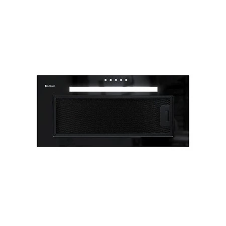 Energy class D, built-in, width 59.6 cm, depth 28 cm, push-button control, speed range: 3, max efficiency 305 m3/h, min noise level 47 dB, made of tempered glass in black color, filter in hood color, LED strip lighting 5 W with neutral color. Linia GLOBALO Design