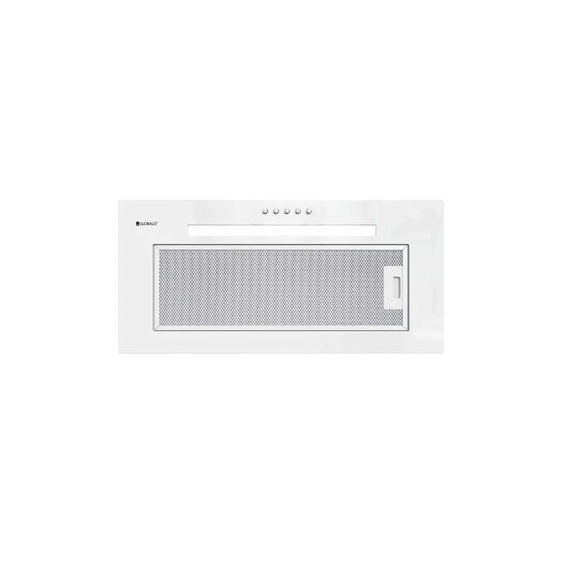 Energy class D, built-in, width 59.6 cm, depth 28 cm, push-button control, speed range: 3, max efficiency 305 m3/h, min noise level 47 dB, made of tempered glass in white color, 5 W neutral color LED strip lighting. Linia GLOBALO Design