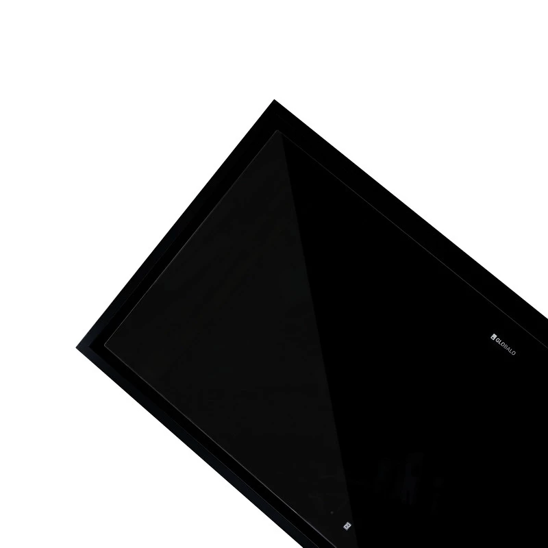 The Novelti kitchen hood has a cover made entirely of tempered glass. The hood frame is steel.
