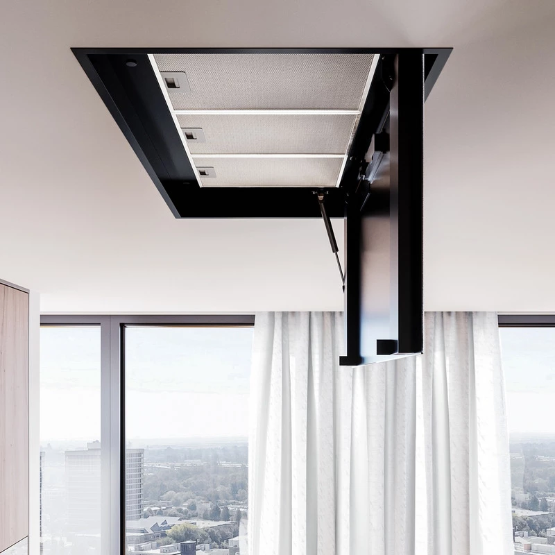 Looking for a discreet yet fully functional appliance that will eliminate all kitchen fumes? The absolutely minimalist design of the Zenara 100.1 Black ceiling hood is sure to win your heart.