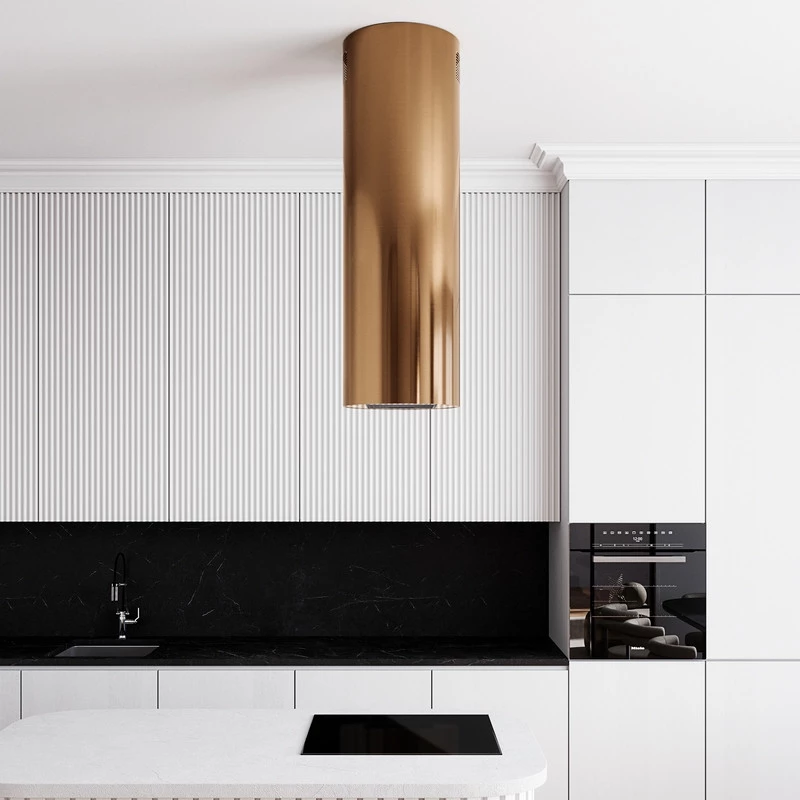 Advantages and benefits for the user of the cooker hood GLOBALO Calmio Isola 39.1 Carmel Gold