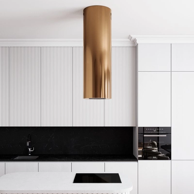 Exceptional, stylish, elegant — Calmio is much more than a cooker hood. It is a unique decoration for the interior that will make the kitchen a place full of elegance. The tube cooker hood is the quintessence of good style and modern technology. With this device, you will gain an impressive, quiet kitchen free from fumes and unpleasant odors.