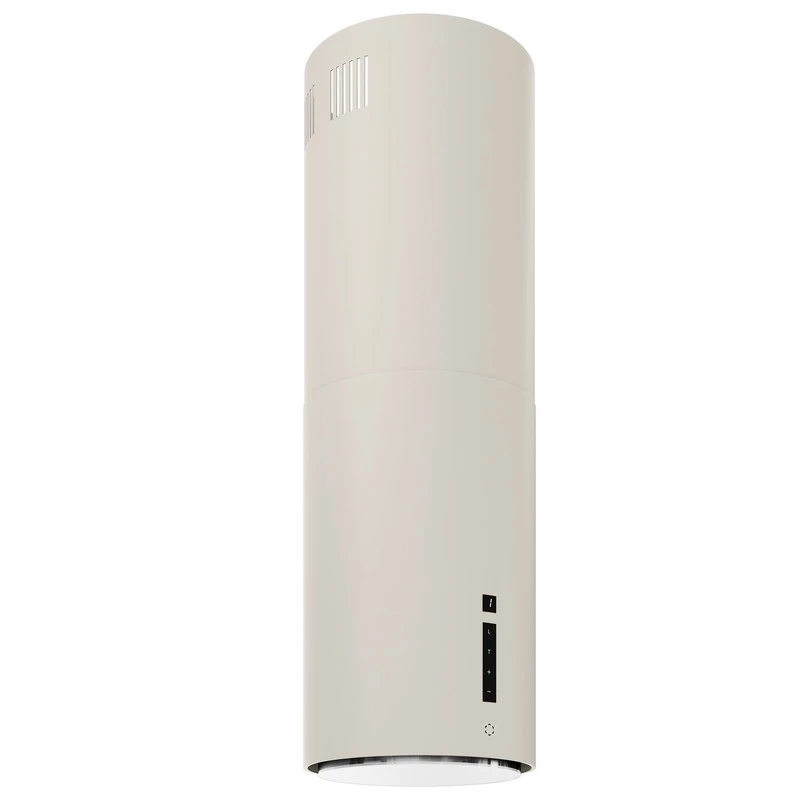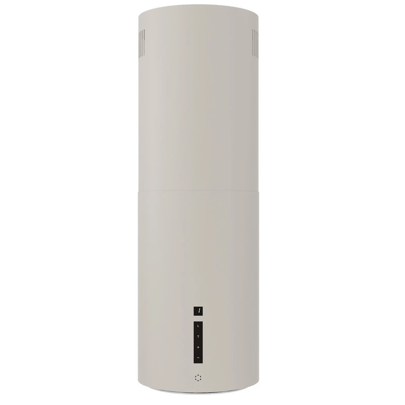 - This elegant cylindrical island hood in a cashmere shade is a versatile appliance that can function both as an extractor and a recirculator. This makes it a perfect fit for any kitchen. As an extractor, it effectively vents air and steam outside, requiring a connection to a ventilation duct. If your kitchen is not equipped with such a solution, the hood can operate as a recirculator, purifying the air with a carbon filter.