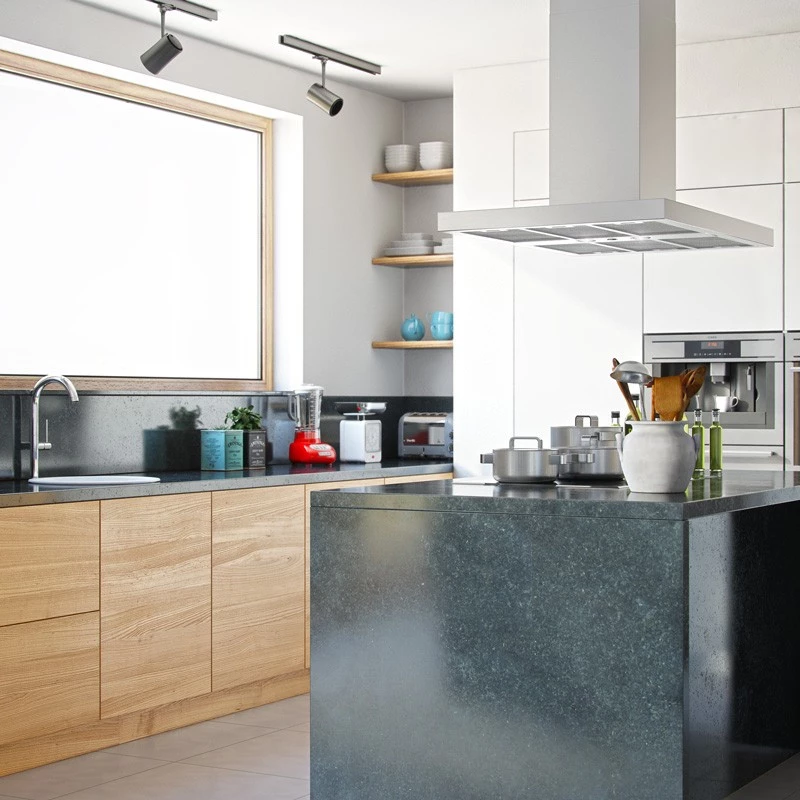 This hood is super efficient, so it is worth installing it in a large kitchen – over the kitchen island.