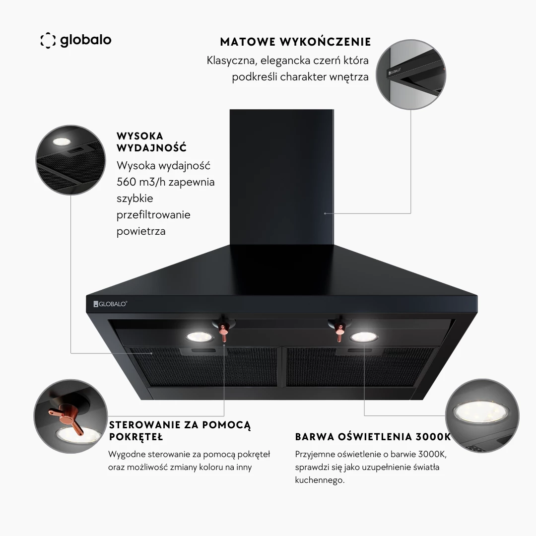 - The GLOBALO BERTEZ 60.3 Black Cooker hood can operate with a remote motor