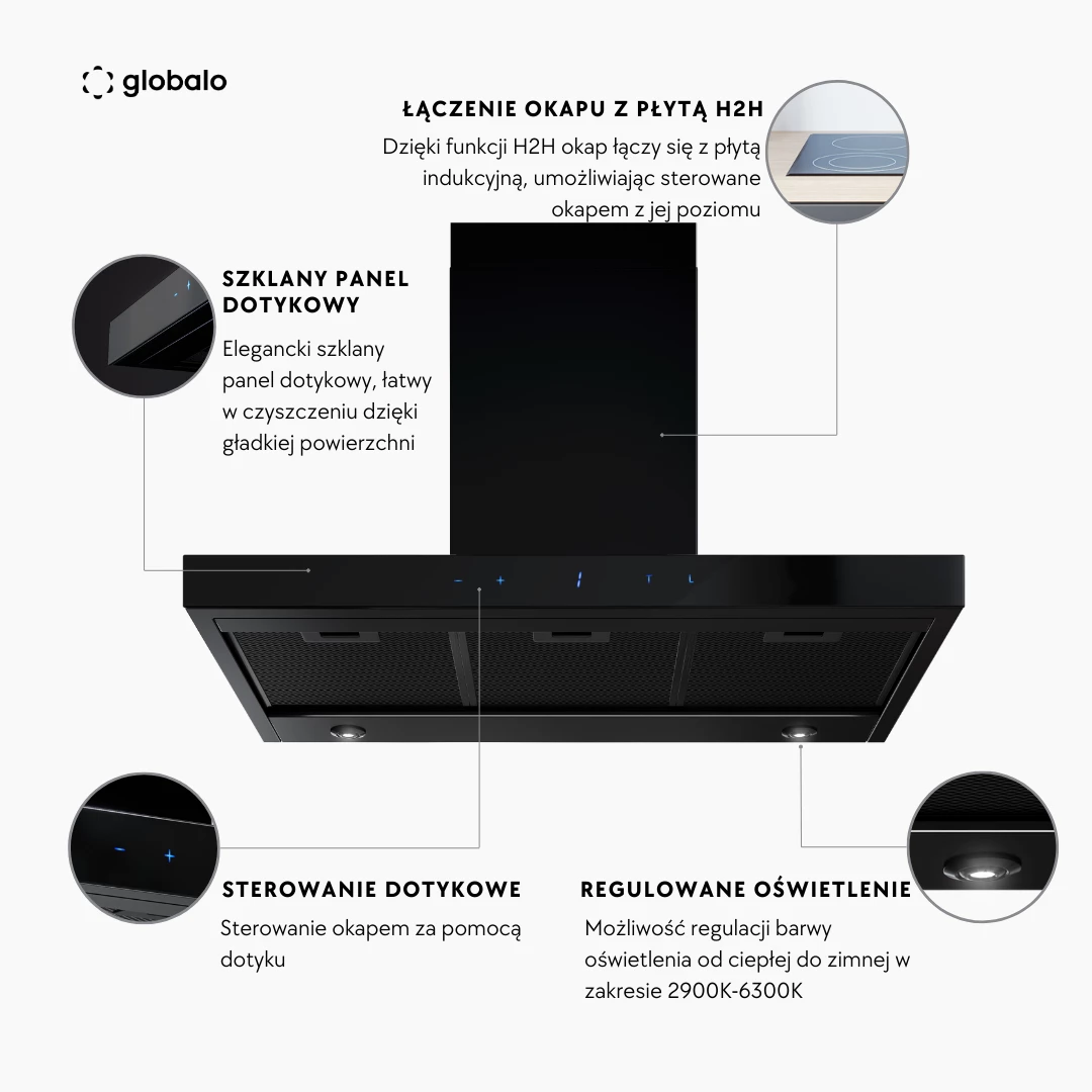 Cooker hood GLOBALO VERTA 90.3 H2H BLACK