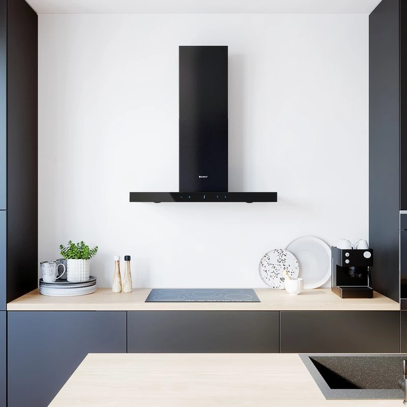 MaterialsThe wall-mounted cooker hood Verta 90.2 Black is made of high-quality materials – solid lacquered steel and tempered glass – in black color.
