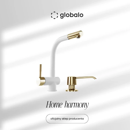 The GLOBALO Lobio White/Light Gold Ring set with the Intio White dispenser is a choice for those who value beauty and functionality. The faucet perfectly complements both modern and classic interiors, while the dispenser subtly completes the look. With its elegant finish and thoughtful solutions, the kitchen becomes even more stylish and user-friendly.
