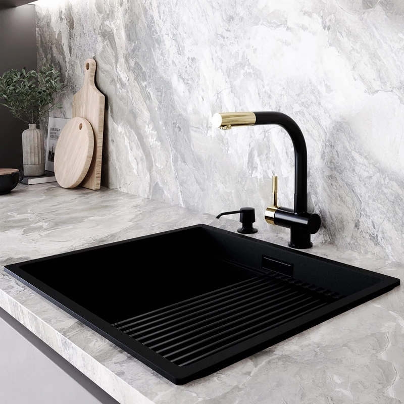 Lobio Black/Light Gold Ring is beauty and style, but also unparalleled functionality in your kitchen. It's not just a faucet, it's an element that, thanks to its functions, will enhance the comfort of daily activities and give your kitchen a unique character.