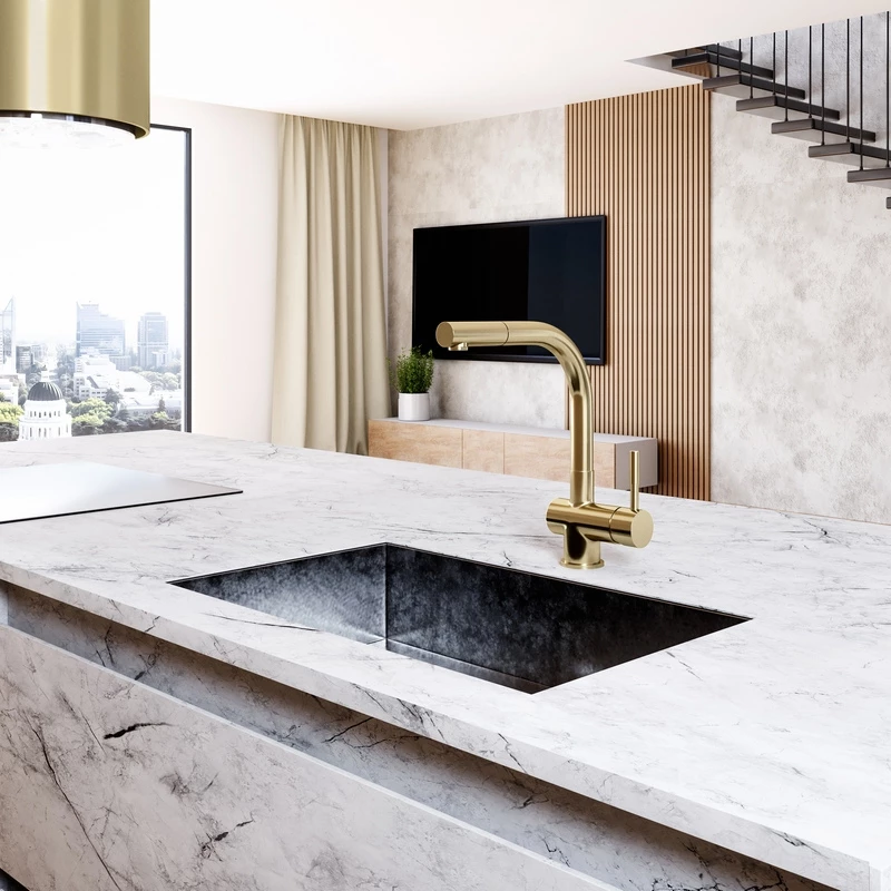 GLOBALO Lobio Light Gold Kitchen Tap – Installation Example