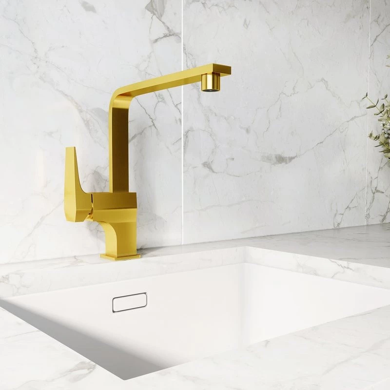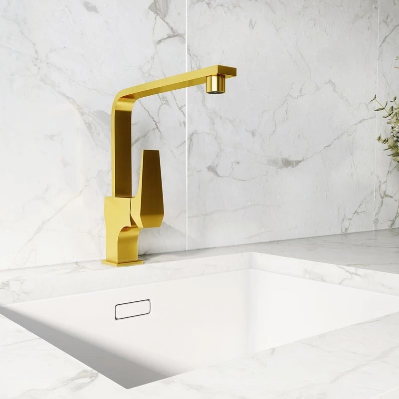 MaterialsThe faucet is made of brass with a PVD coating in gold color. The handle is made of zinc alloy.