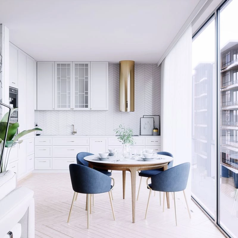 Thanks to the use of the extension, the cooker hood can reach the ceiling in the kitchen, which positively affects the aesthetics of the interior.