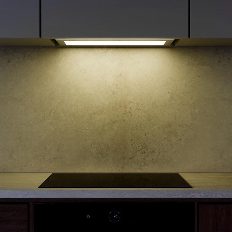 • The LED panel lighting (4 W) is energy-efficient and perfectly illuminates your workspace. The hood offers colour temperature adjustment from warm (2900 K) to cool (5700 K), allowing you to match the lighting to your mood, time of day, or interior style. Additionally, the option to adjust brightness – from soft, ambient lighting to full, bright illumination – ensures comfort and functionality during cooking and everyday use.