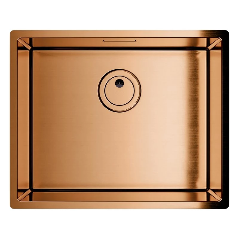 The sink is made of inox steel, on which a PVD coating in copper color has been applied.