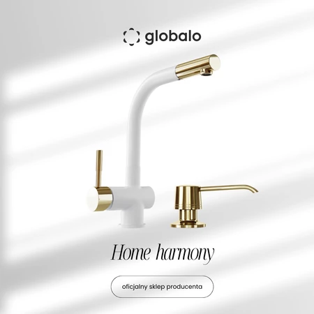 Zestaw GLOBALO Lobio White/Light Gold Ring z dozownikiem Intio Light Gold to propozycja dla osób, które cenią piękno i funkcjonalność. Bateria idealnie komponuje się z nowoczesnymi i klasycznymi wnętrzami, a dozownik subtelnie dopełnia całość. Dzięki eleganckiemu wykończeniu i przemyślanym rozwiązaniom kuchnia staje się jeszcze bardziej stylowa i przyjazna w codziennym użytkowaniu.