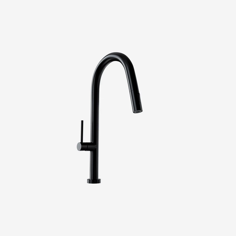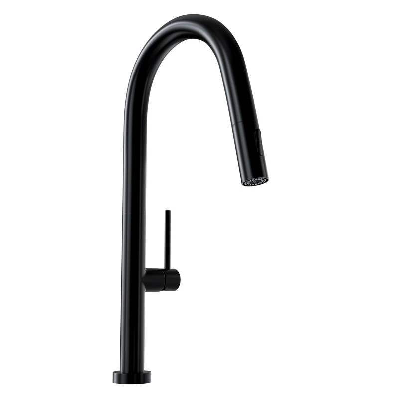 Czarna bateria kuchenna z wyciąganą wylewką Dervina